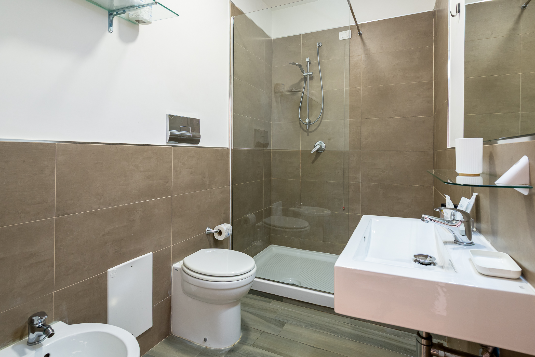 Ogni stanza dispone di bagno privato è equipaggiata con tutti i comfort moderni: aria condizionata, TV led, Wi-Fi gratuito, mini frigobar, cassaforte, oscuranti. Le ampie finestre permettono di godere di una vista incantevole sulla città o sulle splendide colline che circondano Salerno, mentre i bagni, eleganti e funzionali, sono dotati di doccia spaziosa, set di cortesia e asciugacapelli.